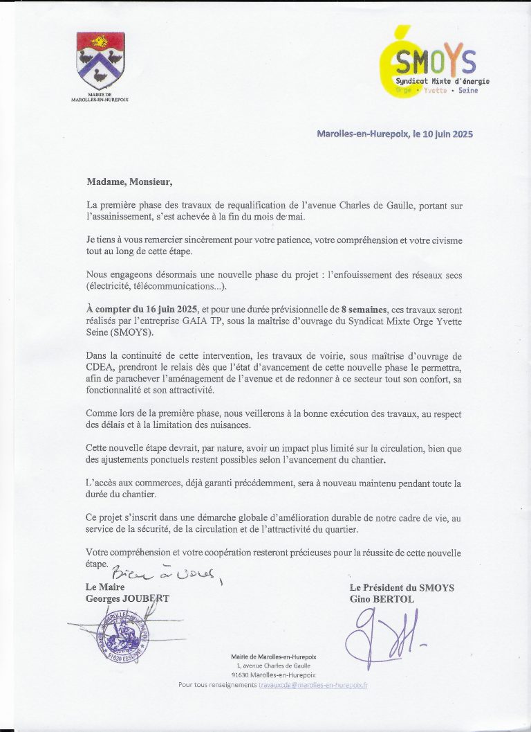 Les travaux en domaine public comprennent la réalisation des tranchées et de la pose des câbles en attentes nécessaire à l’enfouissement des réseaux. La dépose des réseaux aériens et des poteaux interviendra à la suite des contrôles des concessionnaires (ENEDIS et ORANGE) prévu à la rentrée.
